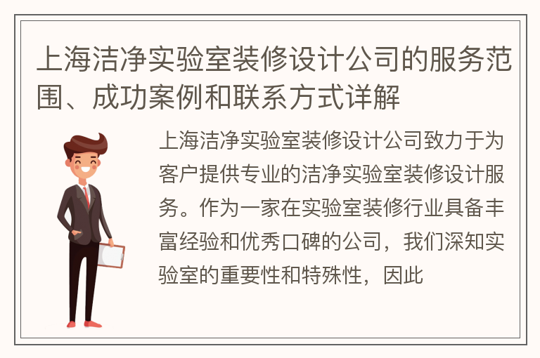 上海洁净实验室装修设计公司的服务范围、成功案例和联系方式详解