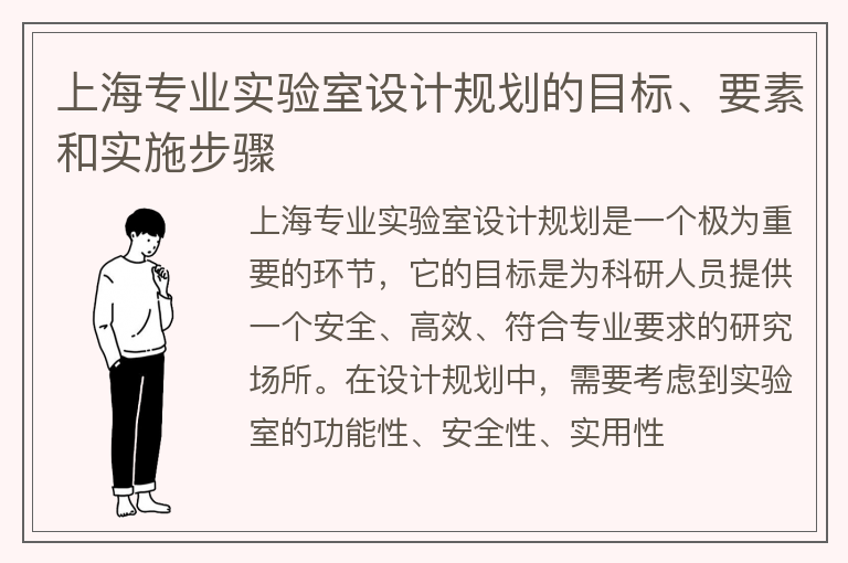 上海专业实验室设计规划的目标、要素和实施步骤
