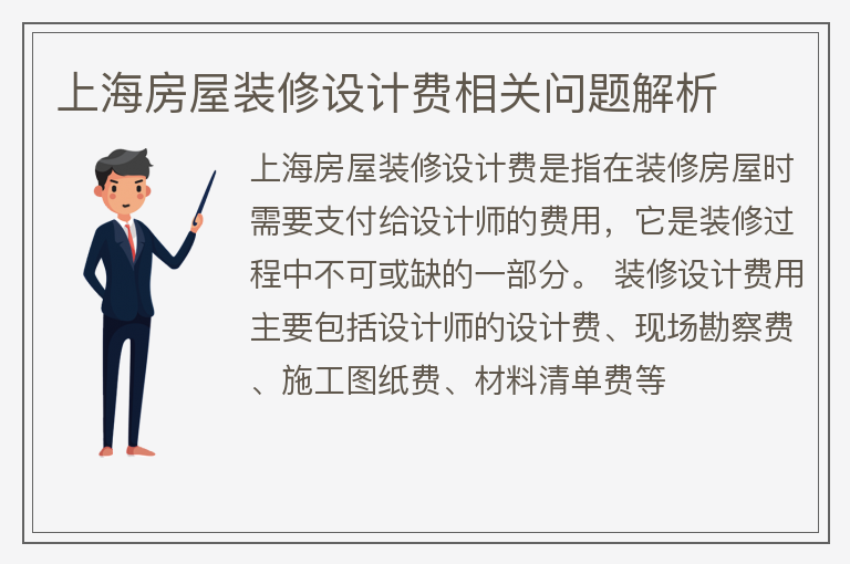 上海房屋装修设计费是指在装修房屋时需要支付给设计师的费用,它是装修过程中不可或缺的一部分。 装修设计费用主要包括设计师的设计费、现场勘察费、施工图纸费、材料清单费等......【点击详情】