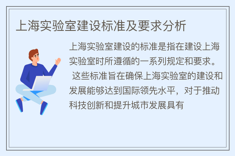 上海实验室建设的标准是指在建设上海实验室时所遵循的一系列规定和要求。 这些标准旨在确保上海实验室的建设和发展能够达到国际领先水平,对于推动科技创新和提升城市发展具有......【点击详情】