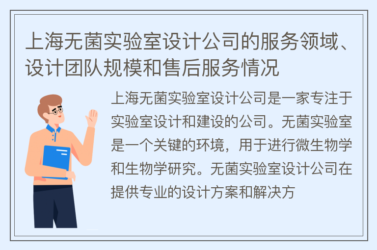上海无菌实验室设计公司的服务领域、设计团队规模和售后服务情况
