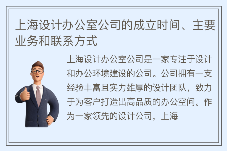 上海设计办公室公司的成立时间、主要业务和联系方式