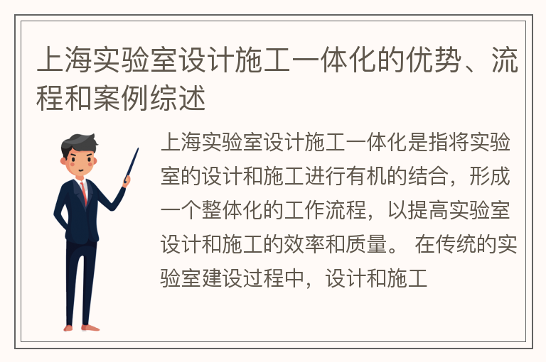 上海实验室设计施工一体化是指将实验室的设计和施工进行有机的结合,形成一个整体化的工作流程,以提高实验室设计和施工的效率和质量。 在传统的实验室建设过程中,设计和施工......【点击详情】