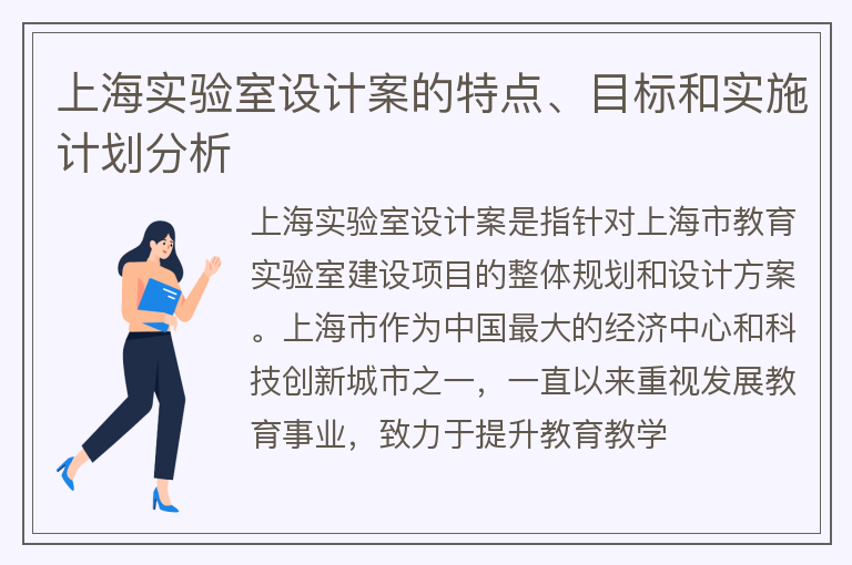 上海实验室设计案是指针对上海市教育实验室建设项目的整体规划和设计方案。上海市作为中国最大的经济中心和科技创新城市之一,一直以来重视发展教育事业,致力于提升教育教学......【点击详情】