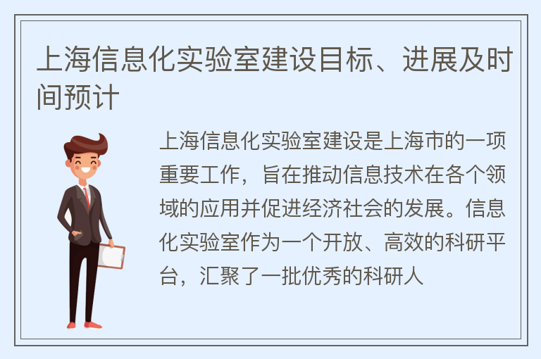 上海信息化实验室建设是上海市的一项重要工作,旨在推动信息技术在各个领域的应用并促进经济社会的发展。信息化实验室作为一个开放、高效的科研平台,汇聚了一批优秀的科研人......【点击详情】