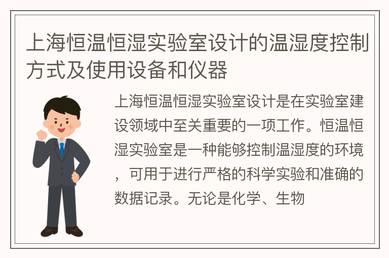 上海恒温恒湿实验室设计的温湿度控制方式及使用设备和仪器