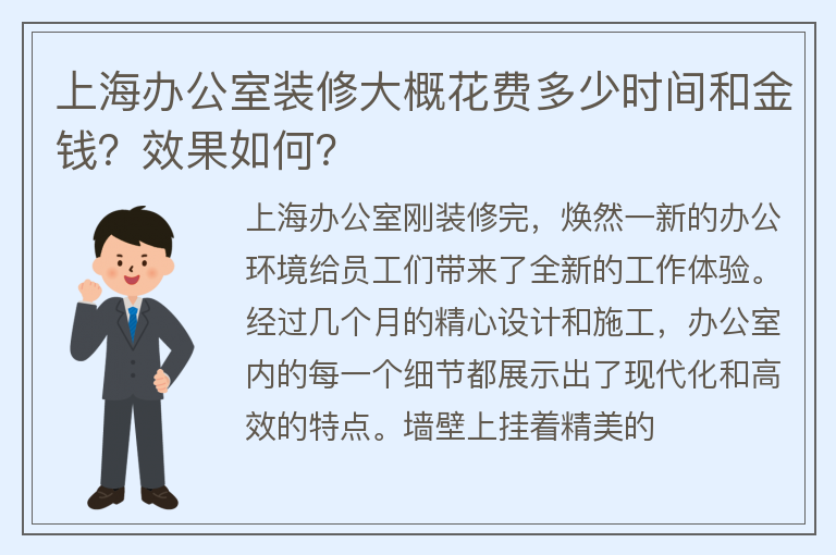 上海办公室装修大概花费多少时间和金钱?效果如何?