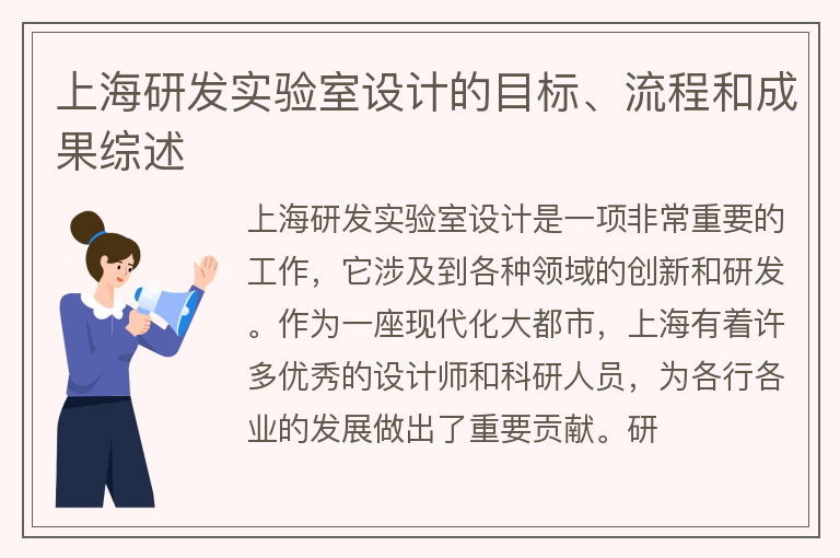 上海研发实验室设计是一项非常重要的工作,它涉及到各种领域的创新和研发。作为一座现代化大都市,上海有着许多优秀的设计师和科研人员,为各行各业的发展做出了重要贡献。研......【点击详情】