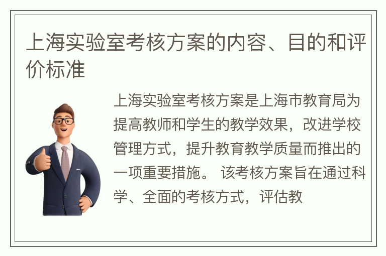 上海实验室考核方案的内容、目的和评价标准