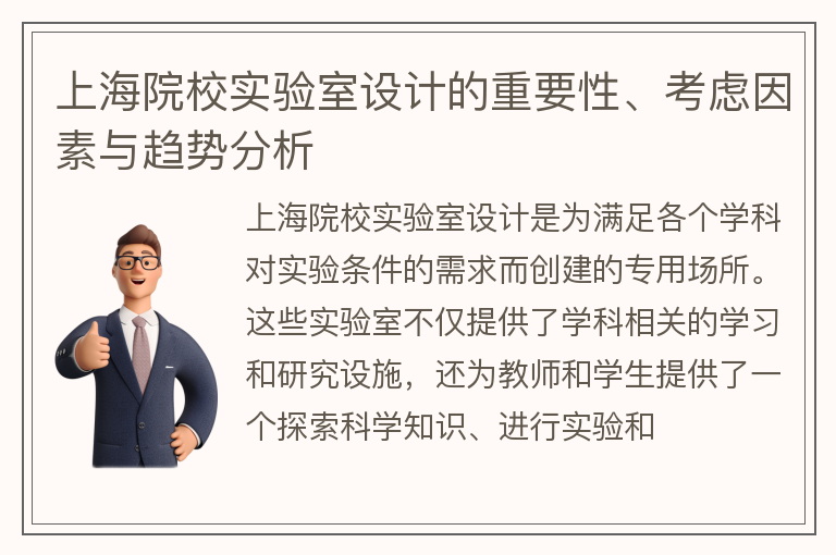 上海院校实验室设计的重要性、考虑因素与趋势分析