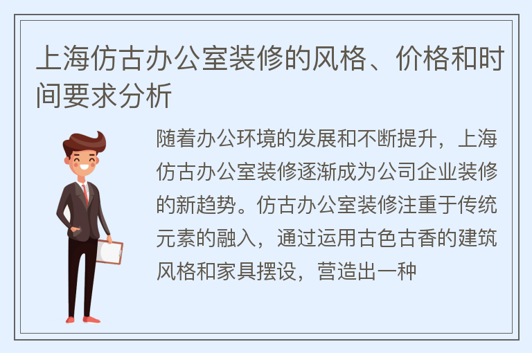 上海仿古办公室装修的风格、价格和时间要求分析