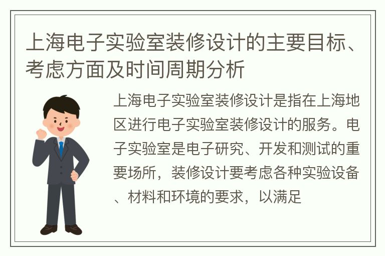 上海电子实验室装修设计的主要目标、考虑方面及时间周期分析