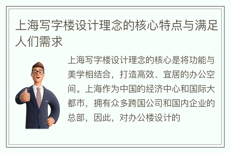 上海写字楼设计理念的核心特点与满足人们需求