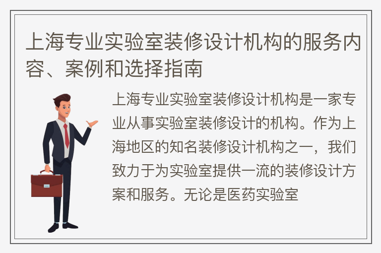 上海专业实验室装修设计机构的服务内容、案例和选择指南
