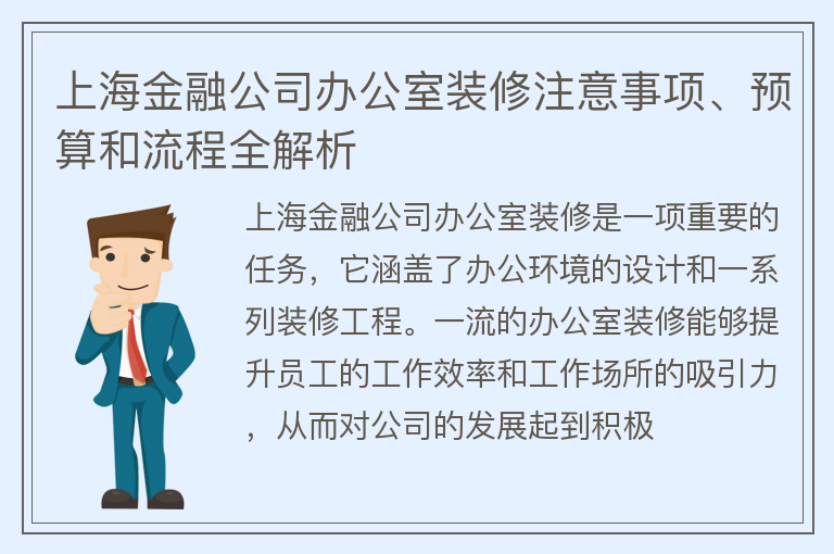 上海金融公司办公室装修注意事项、预算和流程全解析