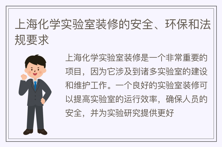 上海化学实验室装修是一个非常重要的项目,因为它涉及到诸多实验室的建设和维护工作。一个良好的实验室装修可以提高实验室的运行效率,确保人员的安全,并为实验研究提供更好......【点击详情】