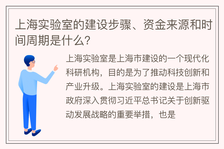 上海实验室的建设步骤、资金来源和时间周期是什么?