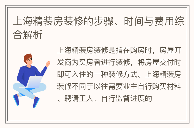 上海精装房装修是指在购房时,房屋开发商为买房者进行装修,将房屋交付时即可入住的一种装修方式。上海精装房装修不同于以往需要业主自行购买材料、聘请工人、自行监督进度的......【点击详情】
