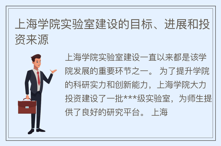 上海学院实验室建设一直以来都是该学院发展的重要环节之一。 为了提升学院的科研实力和创新能力,上海学院大力投资建设了一批***级实验室,为师生提供了良好的研究平台。 上海......【点击详情】