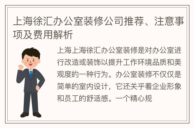 上海徐汇办公室装修公司推荐、注意事项及费用解析