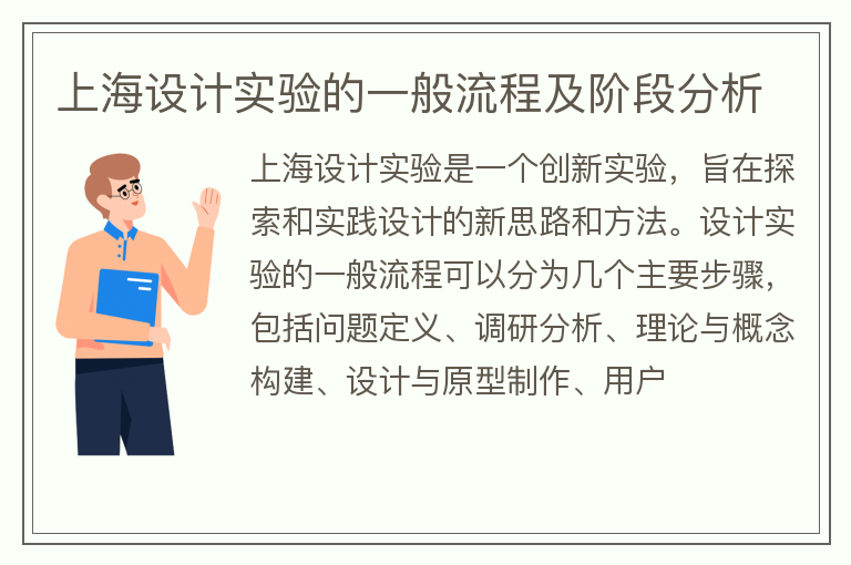 上海设计实验是一个创新实验,旨在探索和实践设计的新思路和方法。设计实验的一般流程可以分为几个主要步骤,包括问题定义、调研分析、理论与概念构建、设计与原型制作、用户......【点击详情】