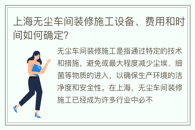 上海无尘车间装修施工设备、费用和时间如何确定?