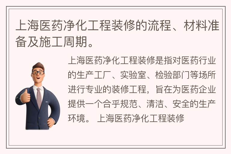 上海医药净化工程装修的流程、材料准备及施工周期。