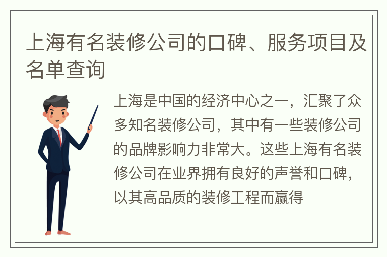 上海有名装修公司的口碑、服务项目及名单查询