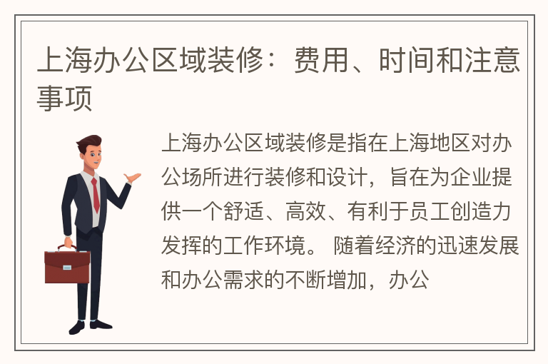 上海办公区域装修:费用、时间和注意事项