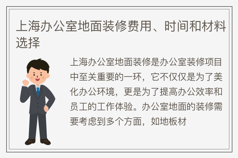 上海办公室地面装修是办公室装修项目中至关重要的一环,它不仅仅是为了美化办公环境,更是为了提高办公效率和员工的工作体验。办公室地面的装修需要考虑到多个方面,如地板材......【点击详情】