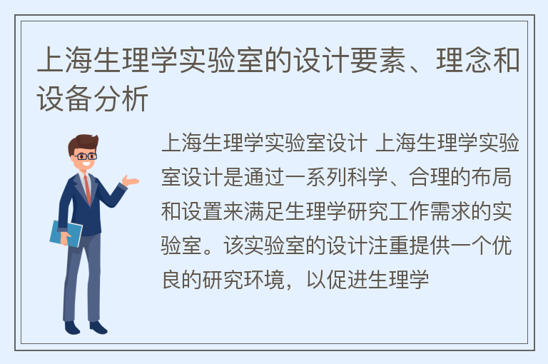 上海生理学实验室设计 上海生理学实验室设计是通过一系列科学、合理的布局和设置来满足生理学研究工作需求的实验室。该实验室的设计注重提供一个优良的研究环境,以促进生理学......【点击详情】