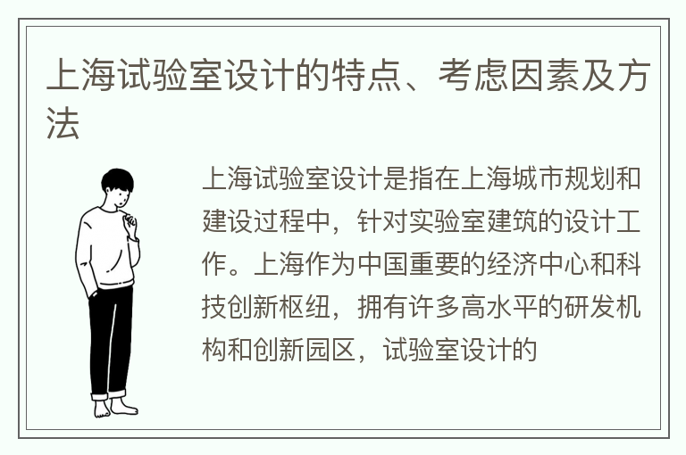 上海试验室设计的特点、考虑因素及方法