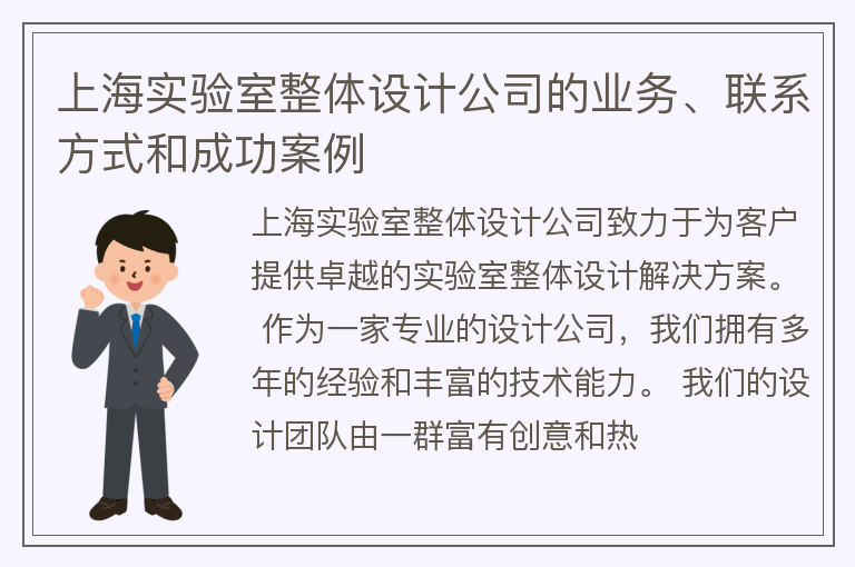 上海实验室整体设计公司的业务、联系方式和成功案例