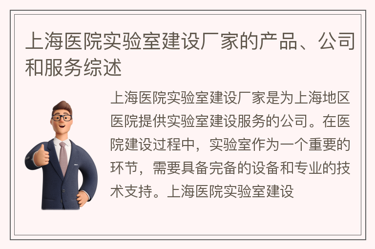 上海医院实验室建设厂家的产品、公司和服务综述