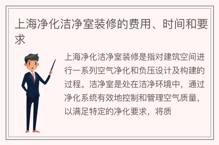 上海净化洁净室装修的费用、时间和要求
