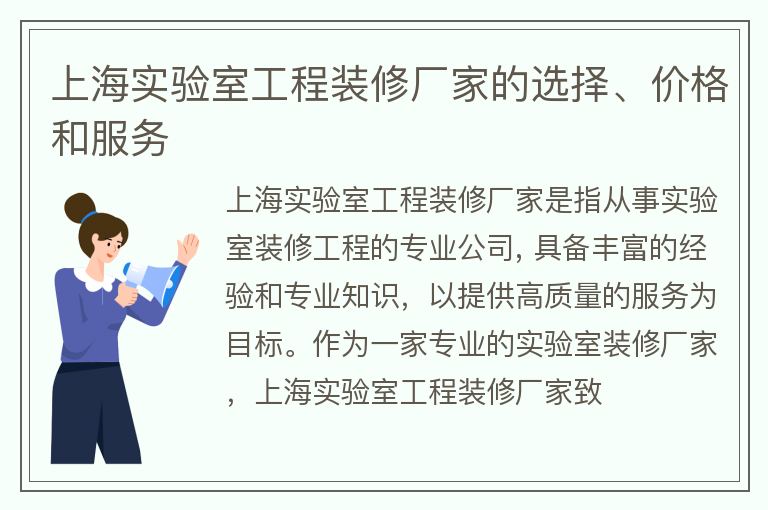 上海实验室工程装修厂家的选择、价格和服务