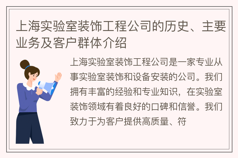 上海实验室装饰工程公司的历史、主要业务及客户群体介绍