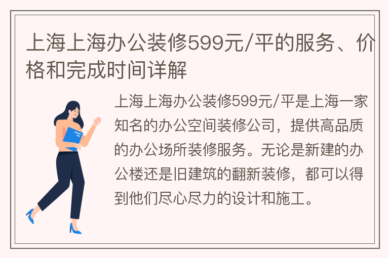 上海上海办公装修599元/平的服务、价格和完成时间详解