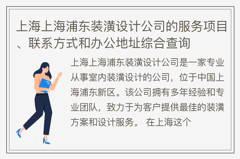 上海上海浦东装潢设计公司的服务项目、联系方式和办公地址综合查询