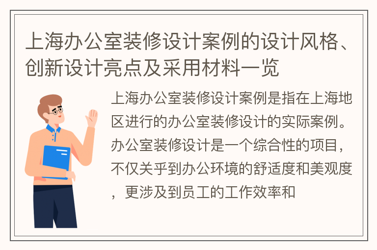 上海办公室装修设计案例的设计风格、创新设计亮点及采用材料一览