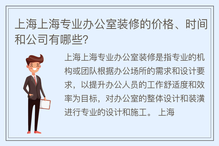上海上海专业办公室装修的价格、时间和公司有哪些?