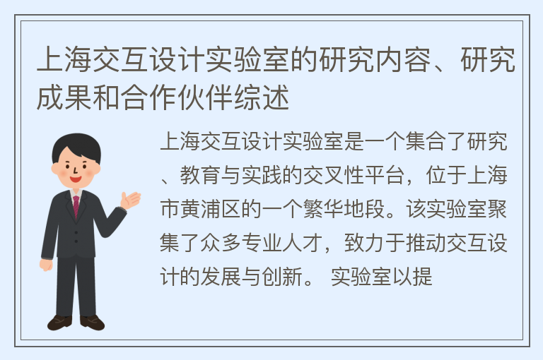 上海交互设计实验室的研究内容、研究成果和合作伙伴综述
