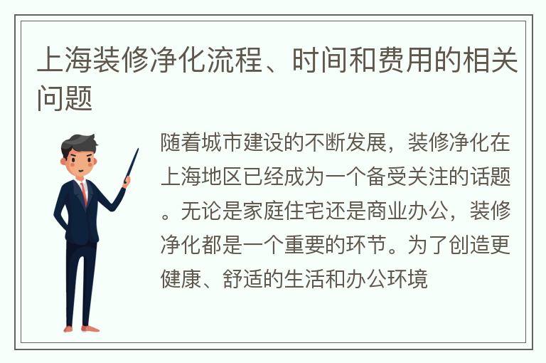 随着城市建设的不断发展,装修净化在上海地区已经成为一个备受关注的话题。无论是家庭住宅还是商业办公,装修净化都是一个重要的环节。为了创造更健康、舒适的生活和办公环境......【点击详情】