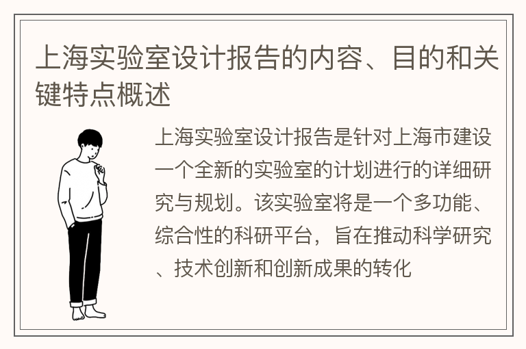 上海实验室设计报告是针对上海市建设一个全新的实验室的计划进行的详细研究与规划。该实验室将是一个多功能、综合性的科研平台,旨在推动科学研究、技术创新和创新成果的转化......【点击详情】