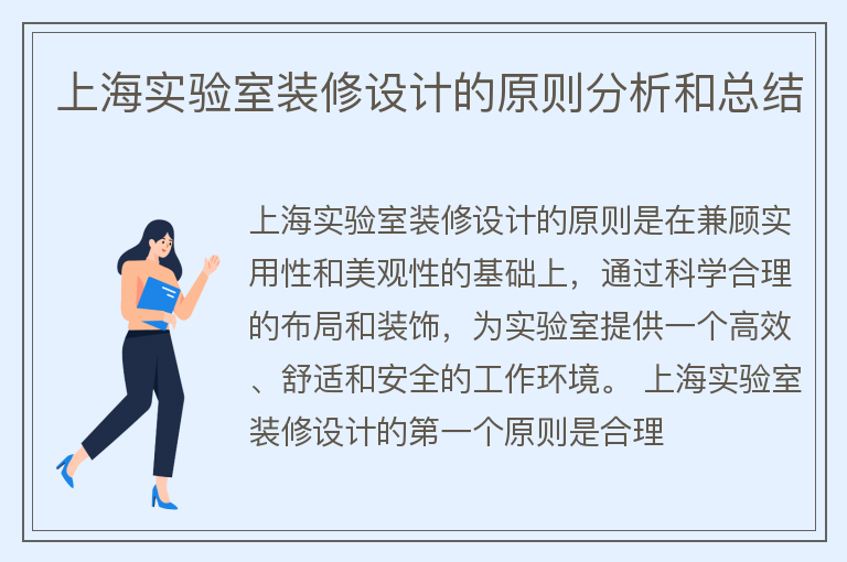 上海实验室装修设计的原则是在兼顾实用性和美观性的基础上,通过科学合理的布局和装饰,为实验室提供一个高效、舒适和安全的工作环境。 上海实验室装修设计的第一个原则是合理......【点击详情】