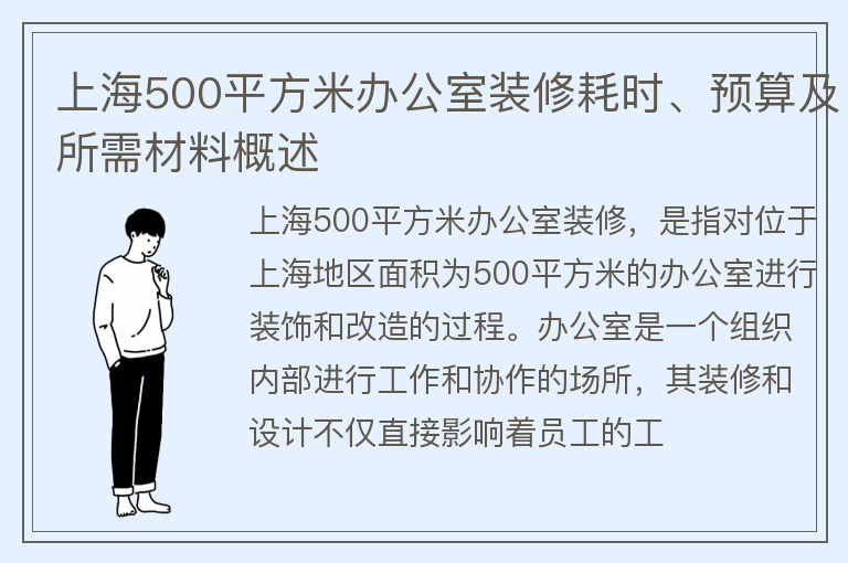上海500平方米办公室装修耗时、预算及所需材料概述