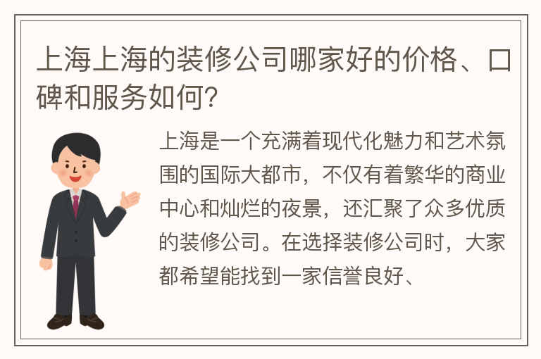 上海上海的装修公司哪家好的价格、口碑和服务如何?