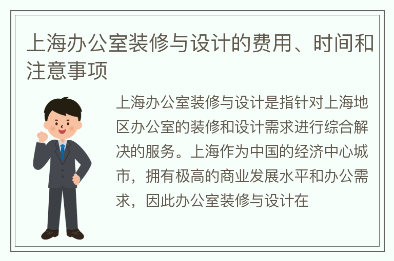 上海办公室装修与设计是指针对上海地区办公室的装修和设计需求进行综合解决的服务。上海作为中国的经济中心城市,拥有极高的商业发展水平和办公需求,因此办公室装修与设计在......【点击详情】