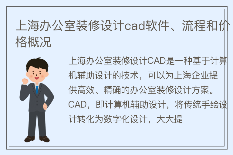 上海办公室装修设计CAD是一种基于计算机辅助设计的技术,可以为上海企业提供高效、精确的办公室装修设计方案。CAD,即计算机辅助设计,将传统手绘设计转化为数字化设计,大大提......【点击详情】