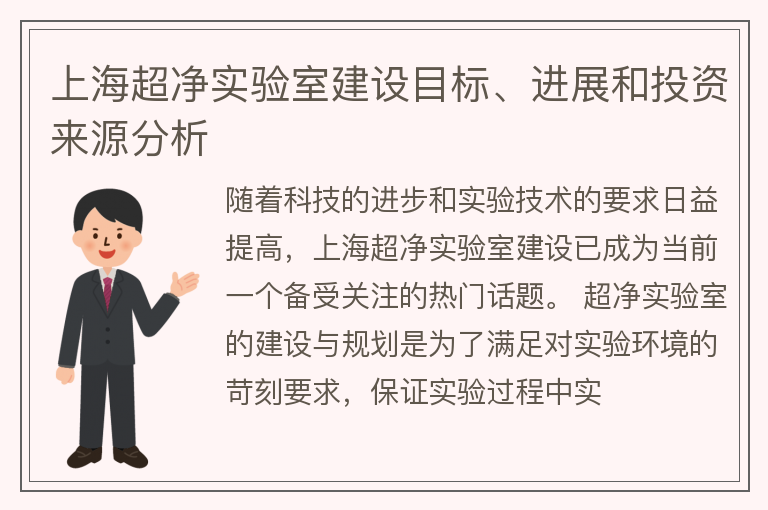 随着科技的进步和实验技术的要求日益提高,上海超净实验室建设已成为当前一个备受关注的热门话题。 超净实验室的建设与规划是为了满足对实验环境的苛刻要求,保证实验过程中实......【点击详情】